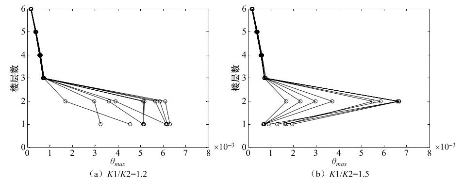 结构 刚度变化位置 A B $ {\beta _{{\theta _{{\rm{max|PGA}}}}}}$ 3层 第1层 -3.419 1.877 1.011 第2层 -4.67 1.636 0.775 第3层 -4.903 1.804 0.851 6层 第1层 -3.896 1.429 0.845 第2层 -4.264 1.274 0.680 第3层 -4.799 1.116 0.544 第4层 -5.21 1.169 0.525 第5层 -5.19 1.273 0.665 第6层 -5.038 1.288 0.631 -