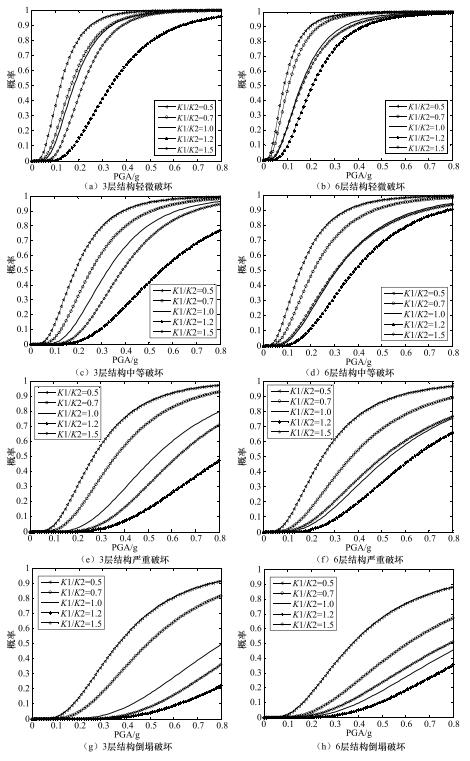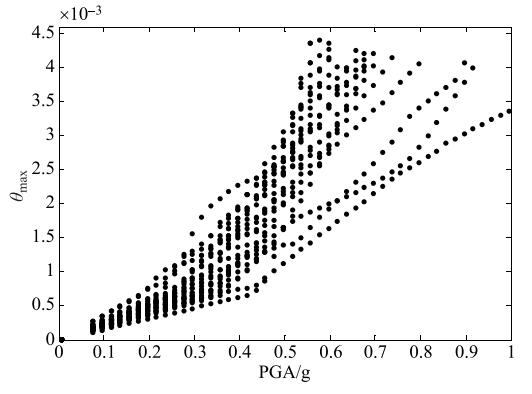 地点 台站 年份 Mw 断层距/km VS30/m·s-1 美国,圣费尔南多 Buena Vista–Taft 1971 6.61 111.37 386 伊朗,曼吉尔 Abhar 1990 7.37 75.58 303 美国,旧金山 El Centro Imp. Co. Cent 1987 6.54 18.2 292 美国,旧金山 Poe Road (temp) 1987 6.54 11.16 317 土耳其,迪兹杰 Bolu 1999 7.14 12.02 294 美国,兰德斯 Coolwater 1992 7.28 19.74 353 美国,兰德斯 Desert Hot Springs 1992 7.28 21.78 359 中国台湾,集集 HWA033 1999 7.62 39.55 379 中国台湾,集集 CHY046 1999 7.62 24.1 442 美国,阿拉斯加德纳利 Carlo (temp) 2002 7.9 49.94 399 美国,摩根山丘 Gilroy Array #3 1984 6.19 13.01 350 美国,赫克托矿 Hesperia - 4th & Palm 1999 7.13 89.87 358 意大利,伊尔皮纳 Calitri 1980 6.2 8.81 456 土耳其,科贾埃利 Goynuk 1999 7.51 31.74 348 土耳其,科贾埃利 Iznik 1999 7.51 30.73 477 美国,洛马普雷塔 Anderson Dam (L Abut) 1989 6.93 19.9 489 日本,阪神 Kakogawa 1995 6.9 22.5 312 美国,帝国谷 Cerro Prieto 1979 6.53 15.19 472 美国,帝国谷 Delta 1979 6.53 22.03 242 美国,帝国谷 El Centro Array #9 1940 6.95 6.09 213 日本,阪神 Shin-Osaka 1995 6.9 19.15 256 表 2 层间位移角限值