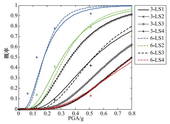 砌体结构 A B $ {\beta _{{\theta _{{\rm{max|PGA}}}}}}$ 3层 -5.003 1.379 0.589 6层 -5.105 1.234 0.569 表 4 设防砖混结构震害矩阵