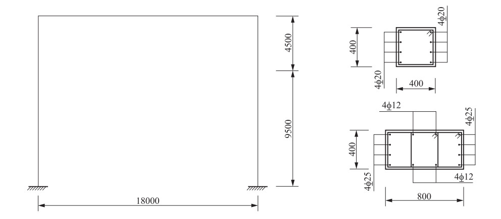 • 图  1  结构立面图及柱配筋(单位:mm)