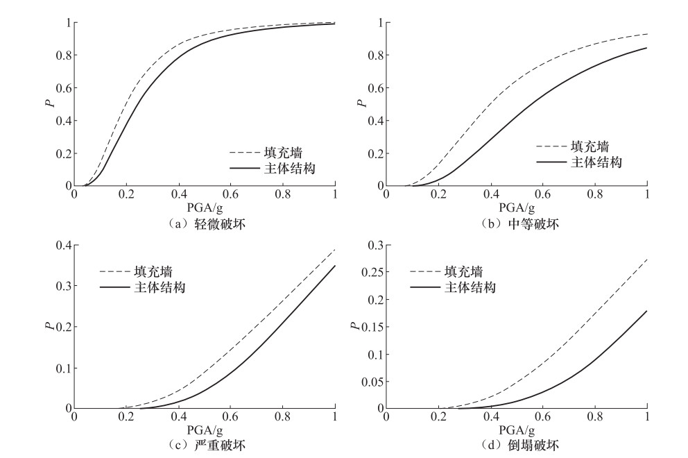 图  11  填充墙与主体结构地震易损性曲线(纵向)