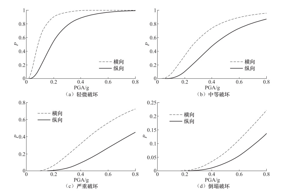 图  10  基于PGA的厂房结构地震易损性曲线(纵向)