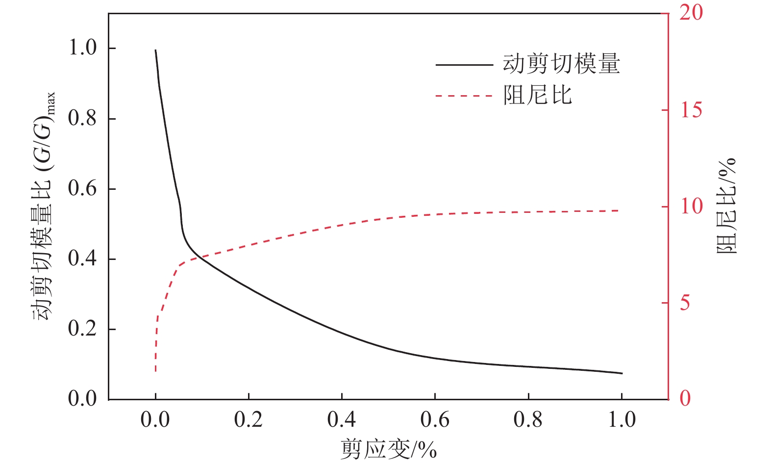 工况 土体类别 弹性模量/MPa 阻尼系数α 阻尼系数β 均匀场地 1 粉质黏土 48.4 0.687 0.008 2 粉质黏土 193.5 0.438 0.004 3 粉质黏土 435.5 0.376 0.002 4 粉质黏土 774.1 0.312 0.001 浅基岩场地 1 粉质黏土 48.4 0.562 0.009 中风化砂岩 1 414.5 0.390 0.006 2 粉质黏土 193.5 0.399 0.004 中风化砂岩 1 414.5 0.458 0.005 3 粉质黏土 435.5 0.369 0.003 中风化砂岩 1 414.5 0.472 0.004 4 粉质黏土 774.1 0.308 0.002 中风化砂岩 1 414.5 0.492 0.004 -