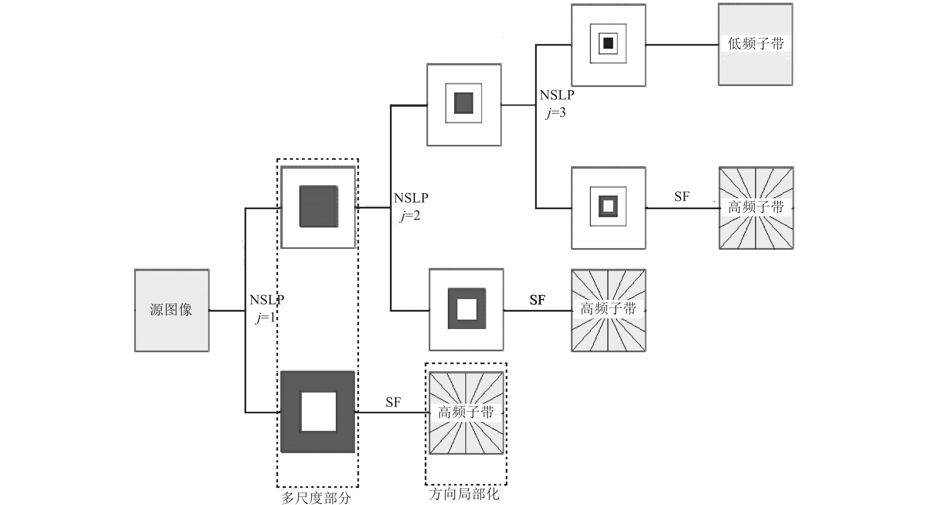 摘要: 强噪声图像去噪一直是图像处理技术应用领域研究的热点,为进一步提高强噪声图像的去噪质量和对图像边缘的保护,针对三维块匹配(Block Matching 3D,BM3D)方法对强噪声图像去噪效果不佳及图像线状奇异性(如边缘)缺乏最优表示的问题,提出了基于二维非下采样剪切波变换(Non-subsampled Shearlet Transform,NSST)和BM3D的组合去噪方法。该方法首先对含噪图像进行NSST正变换,得到不同尺度和不同方向高频子带的剪切波系数;然后对每个尺度不同方向的高频子带求取贝叶斯阈值,并利用渐进半软阈值函数对各高频子带进行去噪;最后对低频子带和各去噪高频子带进行NSST逆变换,得到去噪结果。将去噪图像作为BM3D中基础估计阶段的预滤波,能够进一步提高基础估计阶段分组的正确性,为BM3D去噪奠定良好基础。组合去噪方法结合了NSST与BM3D的各自优势,仿真试验结果表明,对于低噪声图像,本方法和BM3D方法去噪效果相同,略优于非局部平均法;对于强噪声卫星影像,本方法去噪效果优于BM3D和非局部平均法。Abstract: Image denoising with strong noise (noise standard deviation σ≥40) is always a hot topic in the application field of image processing technology. In order to further improve the denoising quality and edge protection of images with strong noise, a combined denoising method based on 2D non-subsampled shearlet transform and BM3D was proposed to solve the problems of poor denoising effect of block-matching 3D (BM3D) on strong noise images and the lack of optimal representation of linear singularity (such as edge). Shearlet transform provides a local, multi-scale and multi-direction analysis method that can optimally represent the linear singularity of image. BM3D method has the best effect on image noise reduction (σ<40) among traditional noise reduction methods. The denoising steps of the combined method are as follows: Firstly, NSST forward transform is performed on the image with noise, and the shear wave coefficients of high-frequency subbands with different scales and directions are obtained. Then the Bayesian threshold values of the high-frequency subbands in different directions of each scale are obtained and the asymptotic semi-soft threshold function is used to denoise the high-frequency subbands. Finally, NSST inverse transform is performed on the low frequency subband and all the denoised high frequency subbands to obtain the denoising results. The denoised image is used as the pre-filter in the basic estimation stage of BM3D, which can further improve the correctness of the grouping in the basic estimation stage and lay a good foundation for the denoising of BM3D. The method of this paper combined the advantages of NSST and BM3D. Simulation results show that for low noise images, the method has the same denoising effect as BM3D, slightly better than that of NLmeans method. The method is superior to BM3D and NLmeans method for the denoising effect of satellite images with strong noise.