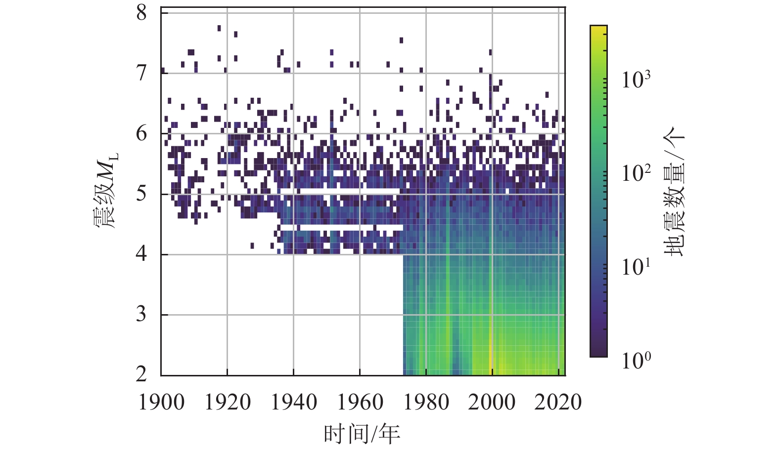 摘要: 本文从中国台湾地区气象厅(CWB)网站收集到了1900—2022年ML2.0以上震源深度小于350 km的地震目录数据集,按照台湾地区更新完善后的地震目录(1900—2014)建议的方法,将该地震目录的地震震级统一为矩震级MW。以此地震目录数据集为基础分析台湾地区的地震活动特征,探讨台湾地区不同时期记录的完备性震级下限MC的历史沿革。本文采用目前国际比较流行的Gardner-Knopoff除丛方法删除了地震目录中的前震和余震,分别选用Gardner-Knopoff时空窗、Grünthal时空窗、Uhrhammer时空窗计算获得了相应的主震目录。结果表明,不同的除丛方法对地震目录影响显著。本文推荐使用Gardner-Knopoff除丛方法的Uhrhammer时空窗参数去除地震目录中的前震和余震事件,并建议在概率地震危险性分析中应该考虑由多种除丛方法引起的认知不确定性。文中采用Stepp(1971)方法对台湾地区的地震目录进行了完整性分析,根据各震级档地震平均发生率估计的方差偏离所绘制的预期回归线的时间,给出了各震级档的完整性时间表,避免了人为主观判断所引入的认知不确定性。最后,分别利用Weichert(1980)、Bender(1983)以及Kijko等(2012)的极大似然估计方法对台湾地区G-R关系中的活动性参数进行估算,获得了台湾地区的地震活动性参数值。本文的研究结果能够为后续台湾地区的概率地震危险性分析提供数据输入,为下一代区划图的编制提供地震活动参数计算方法和参考。Abstract: This paper compiles an earthquake catalogue dataset containing earthquakes with magnitudes above ML2.0 and focal depths less than 350 km, sourced from the Taiwan Meteorological Bureau (CWB) for the period from 1900 to 2022. All magnitudes in this catalogue are standardized to moment magnitudes (MW). Utilizing this dataset, we analyze the characteristics of seismic activity in Taiwan and discuss the historical evolution of the lower limit for completeness magnitude (MC) recorded during different periods. To refine the earthquake catalogue, we apply the widely used Gardner-Knopoff declustering method to remove foreshocks and aftershocks. Three time-distance window parameters—Gardner-Knopoff, Grünthal, and Uhrhammer—are employed to derive the corresponding mainshock catalogue through calculations. Our findings indicate that different declustering methods significantly impact the resulting earthquake catalogue. In this study, we recommend the Gardner-Knopoff declustering method combined with the Uhrhammer time-distance window parameters for effectively removing foreshock and aftershock events. We emphasize that epistemic uncertainty arising from various declustering approaches must be considered in probabilistic seismic hazard analyses. The completeness of the earthquake catalog in Taiwan is assessed using the Stepp (1971) method, which establishes completeness times for each magnitude bin based on the point at which the estimated variance of the average earthquake occurrence rate deviates from the expected regression line, thus minimizing subjective bias. Finally, we estimate the activity parameters of the Gutenberg-Richter (G-R) relationship in Taiwan using maximum likelihood estimation methods developed by Weichert (1980), Bender (1983), and Kijko et al., (2012). The results of this research provide valuable data inputs for future probabilistic seismic hazard analyses in Taiwan and serve as a reference for calculating seismic activity parameters for the upcoming seismic ground motion parameters zonation map of China.1)