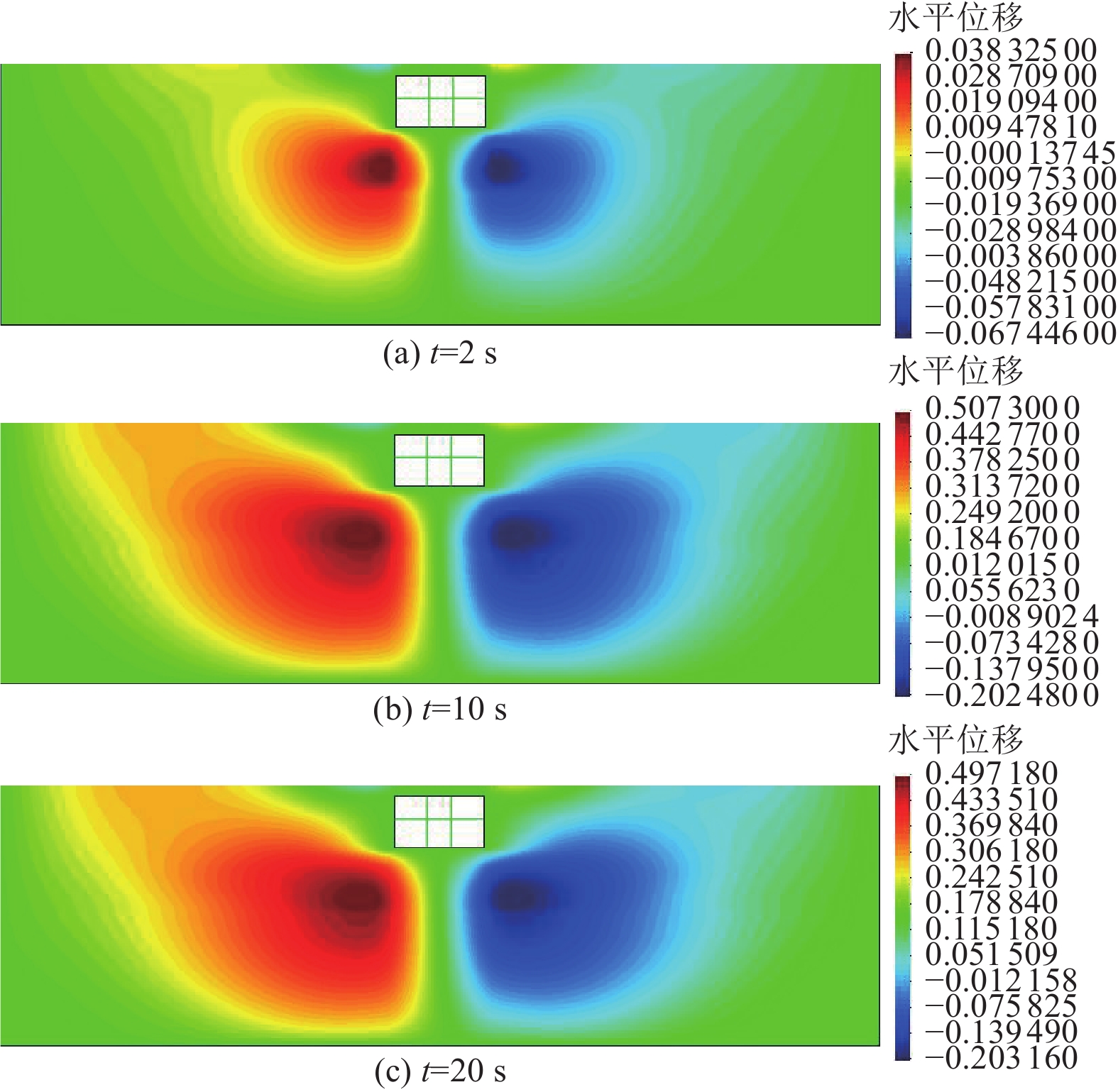 土层 重度/(kN·m−3) 内摩擦角/(°) 弹性模量/MPa 泊松比 孔隙率 素填土 19.0 16 1.0 0.4 — 细砂 19.0 30 7.5 0.3 0.474 黏土 19.3 16 13.2 0.42 — -
